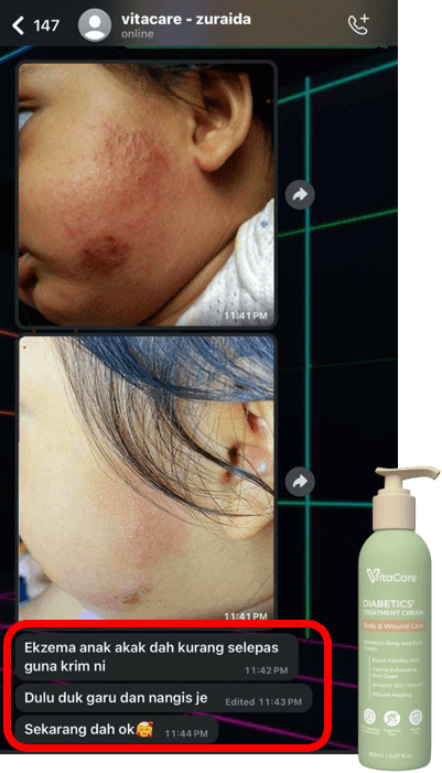 Walaupun tanpa streoid, Vitacare terbukti berkesan menghilangkan kegatalan akibat ekzema tanpa mengeluarkan ribuan ringgit.