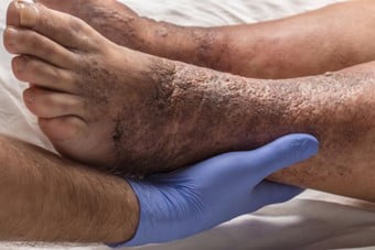 Kulit gatal menyebabkan bahagian kaki terlibat menjadi keras dan menggerutu