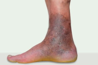 Perubahan warna kulit di bahagian kaki yang terlibat menjadi kehitaman atau pucat keputihan.